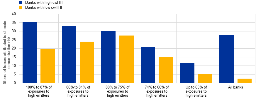 The findings in this box highlight the importance of considering concentration risk in the prudential response to climate change. It shows how institutions and exposures significantly affected by carbon-related concentration risk run a higher risk of incurring losses, extending even to those which have a lower share of exposures to high emitters. Focusing on transition risk, simulation analysis further illustrates that carbon-related concentration risk may be a material risk driver, highlighting its relevance for policymakers, supervisors, and banks alike when considering their response to climate-related risks.