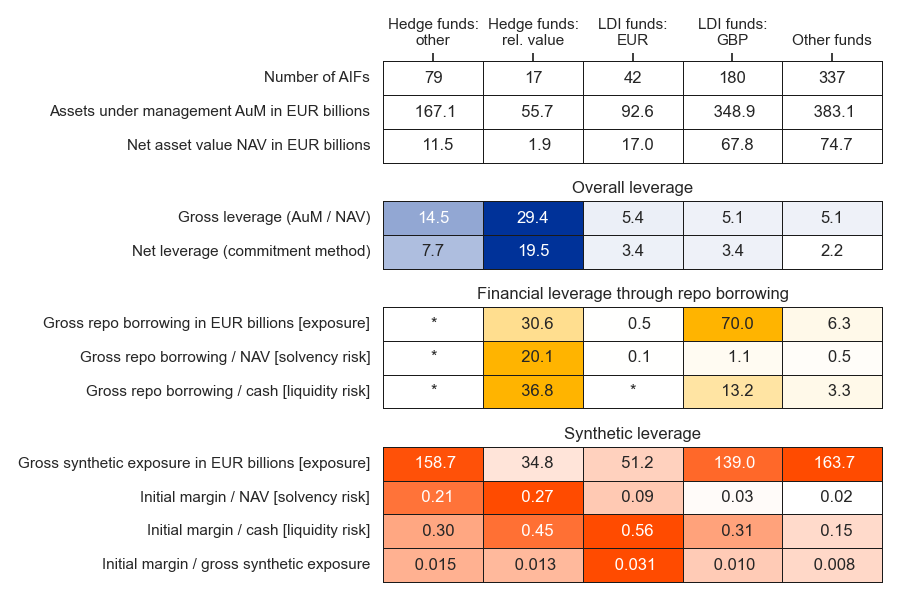 This article offers initial insights from an ongoing European Systemic Risk Board (ESRB) analysis, where AIFMD and transaction-level data are used in combination to identify leverage-related risks and to evaluate policies aimed at tackling those risks. Our initial risk assessment focuses on interest rate risk scenarios and highlights the impact on the liquidity risk faced by leveraged funds, as well as the effect on their net asset value (NAV). We find that LDI funds are particularly vulnerable in the event of an interest rate shock. While LDI funds would face large liquidity demands relating to derivatives (EUR LDI funds) and repo borrowing (GBP LDI funds), hedge funds are more likely to remain resilient under the same type of shock, as their repo and derivatives positions offset each other. Looking ahead, our approach of using a combined dataset allows us to consider various risk scenarios tailored to the specific risk profiles of (cohorts of) funds. It also allows us to evaluate policy measures in terms of their effectiveness in addressing potential vulnerabilities arising from leverage in AIFs and their possible unintended effects.[6]