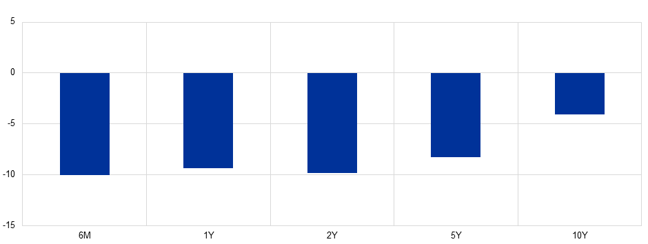 Turning to non-standard policy, let me start with negative interest rates. Chart 5 shows the characteristic footprint of a cut in the policy rate – in negative territory – on the yield curve. It is constructed on the basis of high-frequency financial market information in the same way as Chart 3. There is a clear difference: compared with standard rate cuts in positive territory, rate cuts in negative territory have had a stronger effect further out along the yield curve.