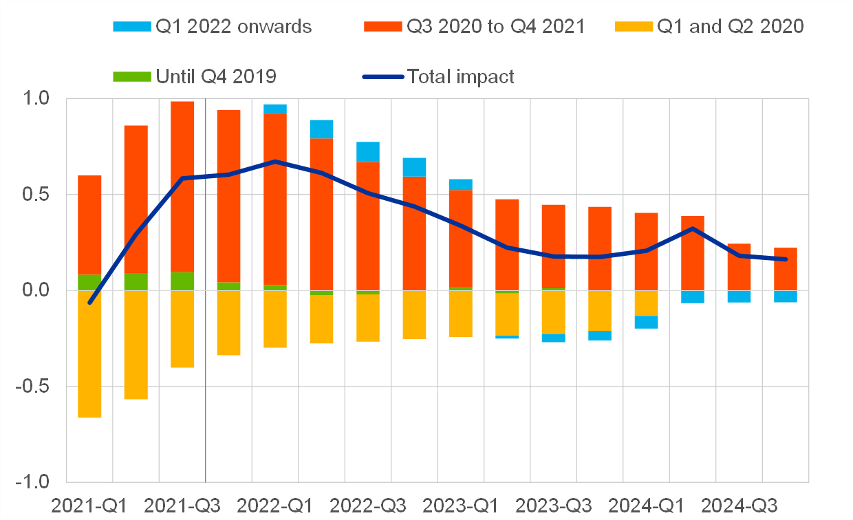 - The effect of higher energy prices is similar to that of a terms of trade tax that the euro area is paying to the rest of the world. See Panetta, F. (2021a), op. cit.