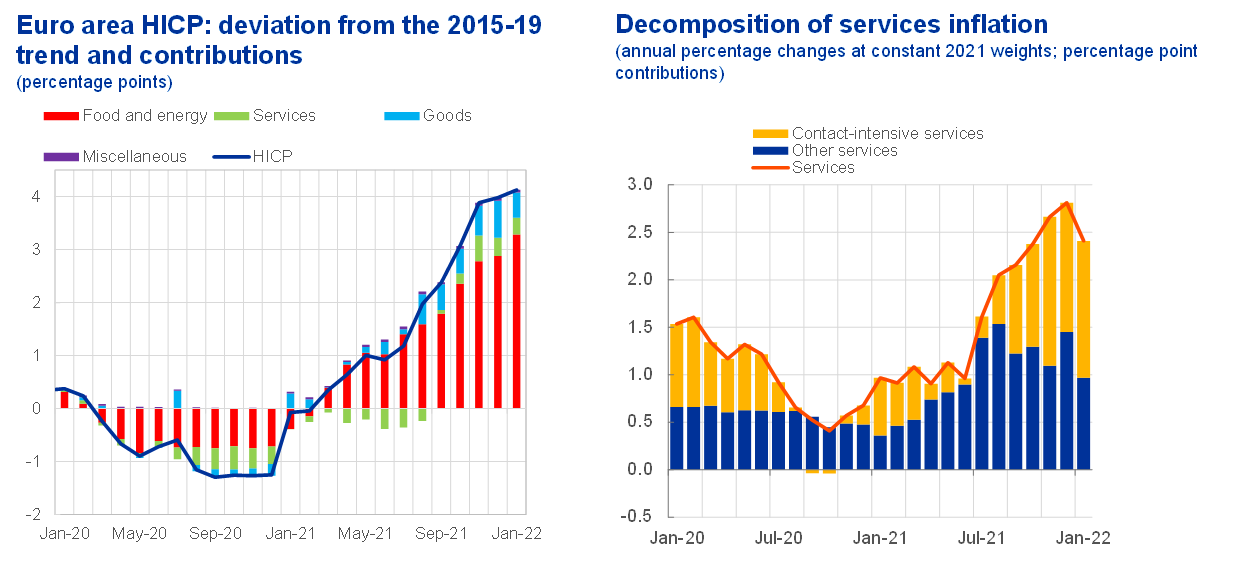 The recent inflation data in the euro area do not make for easy reading. Headline inflation reached 5% in January and is expected to stay above 2% for the entire year, while core inflation is at 2.3%. Inflation pressures are becoming widespread (Chart 1).[2]