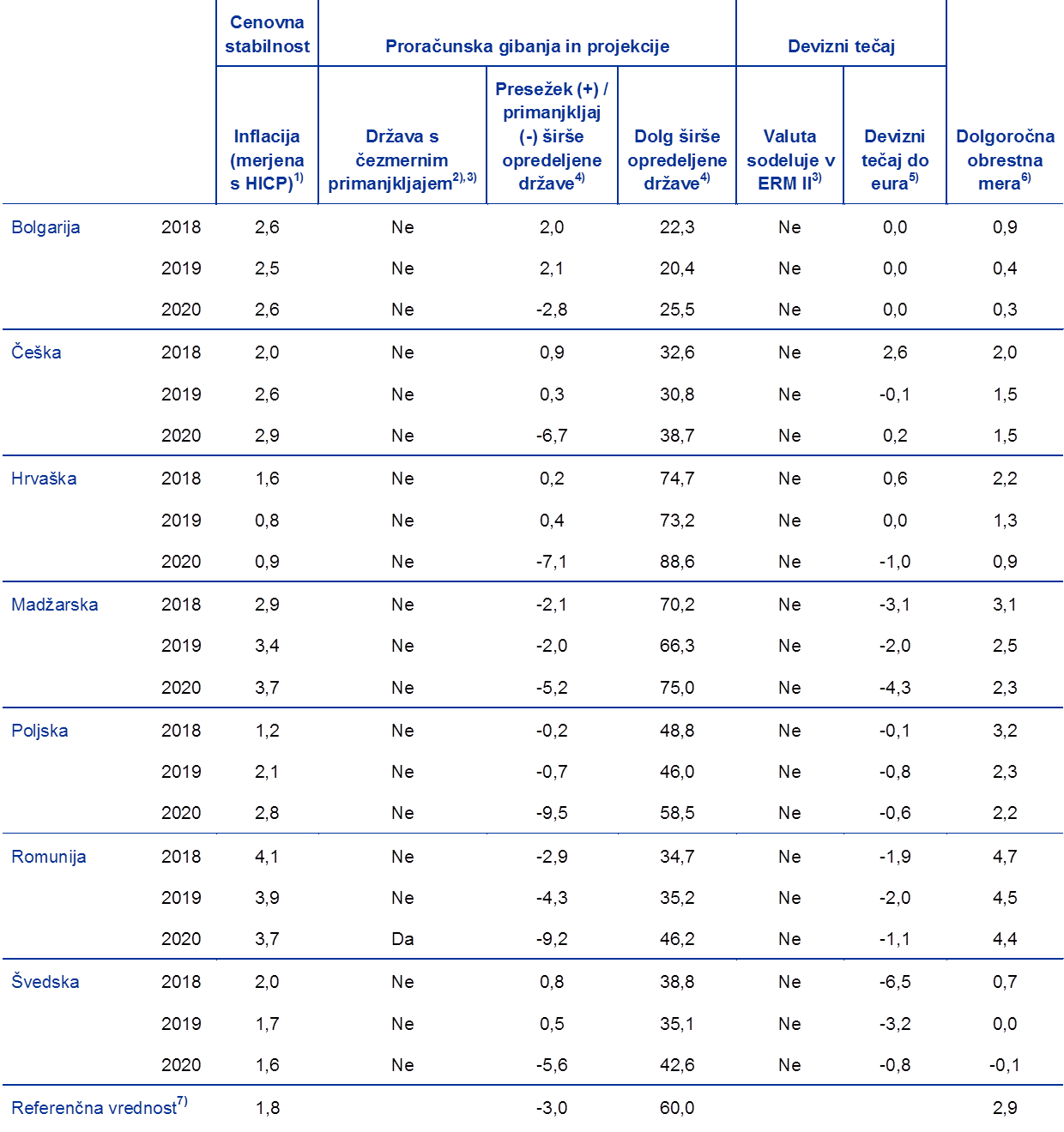 Referenčno obdobje v tem poročilu je od 1. aprila 2018 do 31. marca 2020. Vsi dvostranski devizni tečaji so uradni referenčni devizni tečaji ECB (glej poglavje 6 v angleški izdaji poročila).