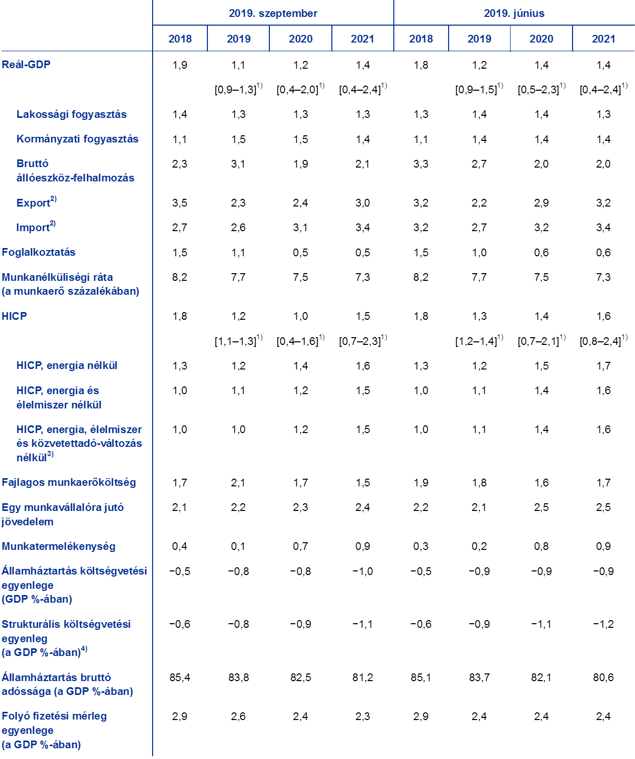 Megjegyzés: Az elemeire bontott, 2019. második negyedévi GDP nem volt elérhető a prognózisra vonatkozó zárónapig, ezért erről az EKB szakértői becslést készítettek.