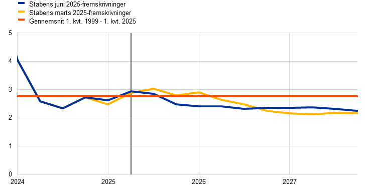 Eurosystemets stabs fremskrivninger | Juni 2025 | 0,9 | 1,1 | 1,3 | 2,0 | 1,6 | 2,0 | 2,4 | 1,9 | 1,9 | |||