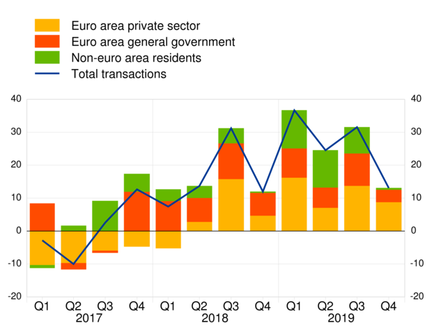 (quarterly transactions in EUR billions; not seasonally adjusted)