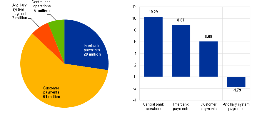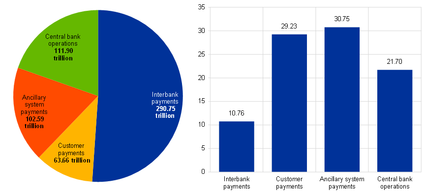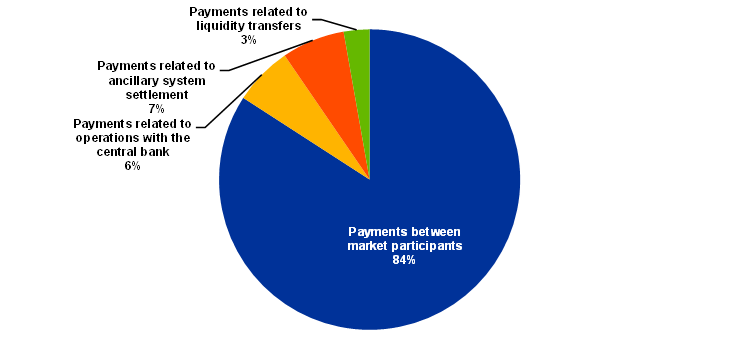 • Transactions between credit institutions generated around 93% of TARGET2 volumes, with the remaining 7% attributable to ancillary system transactions.