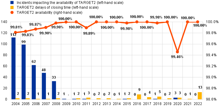In 2022 the availability of TARGET2’s Single Shared Platform (SSP) stood at 100%.