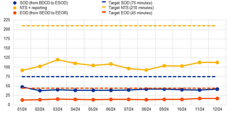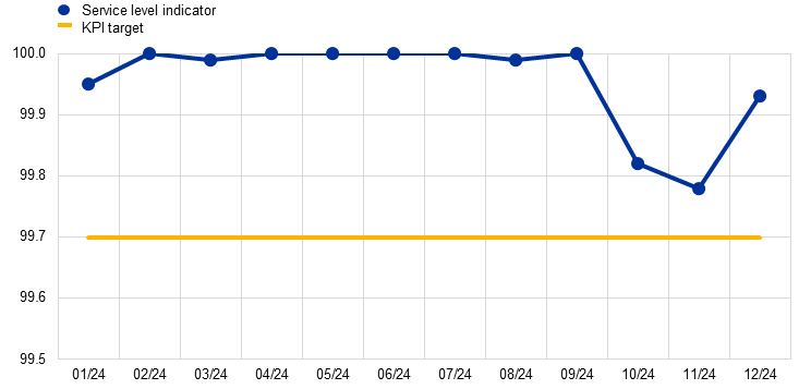 TARGET Services achieved high levels of performance and technical availability in 2024. Incidents, i.e. unplanned interruptions or reductions in the quality of agreed services, were followed up through detailed reporting and risk management processes with the goal of continuously improving the services and enhancing the ability to prevent or mitigate such incidents in the future. Given the importance of TARGET Services for the functioning of the financial system and the potential adverse effects of any malfunctions, it is of the utmost importance that continuous efforts are made to further increase the systems’ security and stability.