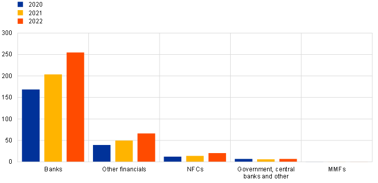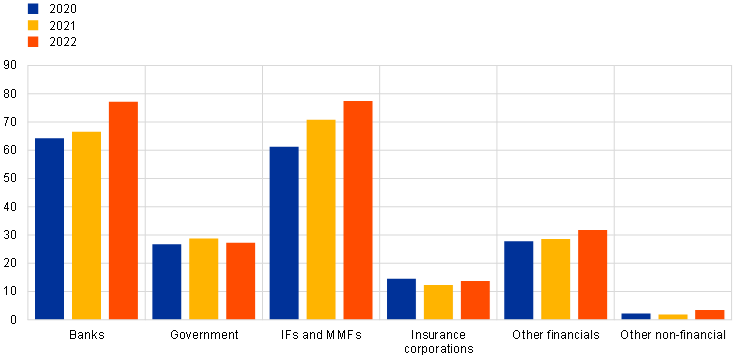 1. Non-banks comprise financial and non-financial corporations, including governments, foreign central banks and intermediaries such as MMFs, investment funds, pension funds and insurance companies.