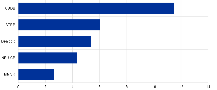 Sources: CSDB for the STS segment. Euro money market survey until 2015, and MMSR from 2016 onwards, for the other four segments.
