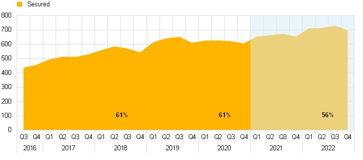 The secured market has become the largest segment of the euro money market, accounting for 56% of total daily turnover in 2022. The mitigation of counterparty risk inherent to secured trades and the more favourable regulatory conditions were key to the secured segment becoming more attractive than the unsecured segment over the past decade. Moreover, repurchase agreements (repos) are an efficient vehicle for sourcing securities.