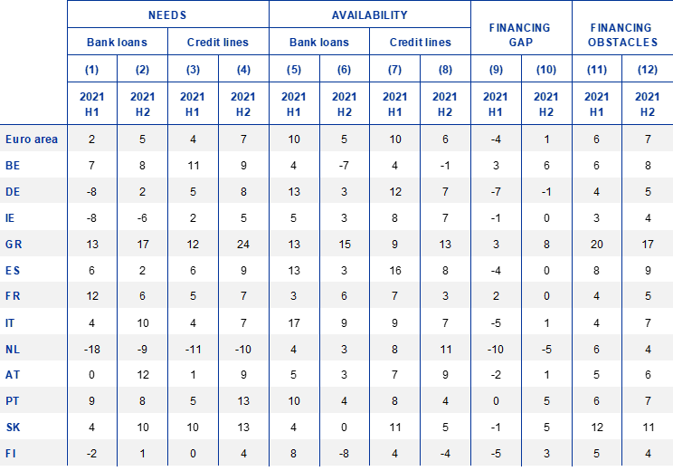 Notes: For the “financing gap”, see the notes to Chart 9; for “financing obstacles”, see the notes to Chart 12. “2021 H1” refers to round 25 (April 2021-September 2021) and “2021 H2” refers to round 26 (October 2021 – March 2022).
