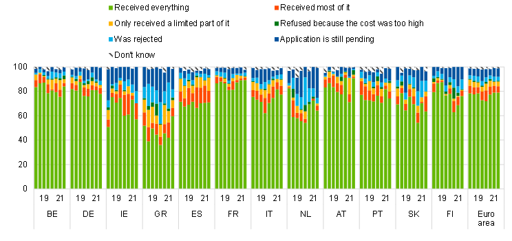 Base: Enterprises that had applied for bank loans (including subsidised bank loans). The figures refer to rounds 19-26 of the survey (April 2018-September 2018 to October 2021-March 2022).