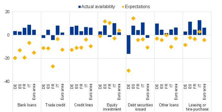 Changes in euro area enterprises’ expectations regarding the availability of financing