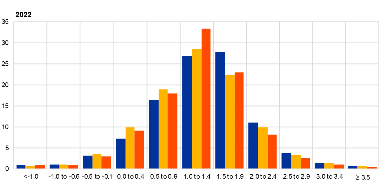 (x-axis: longer-term HICP inflation expectations, annual percentage changes; y-axis: percentages of respondents)