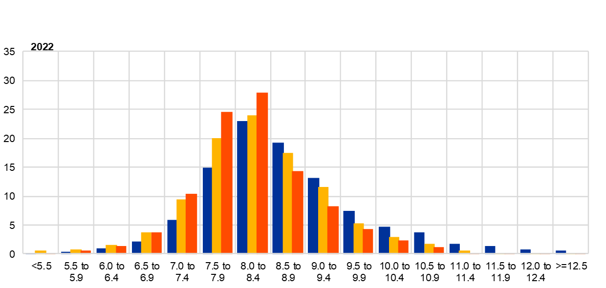 (x-axis: longer-term HICP inflation expectations, annual percentage changes; y-axis: percentages of respondents)