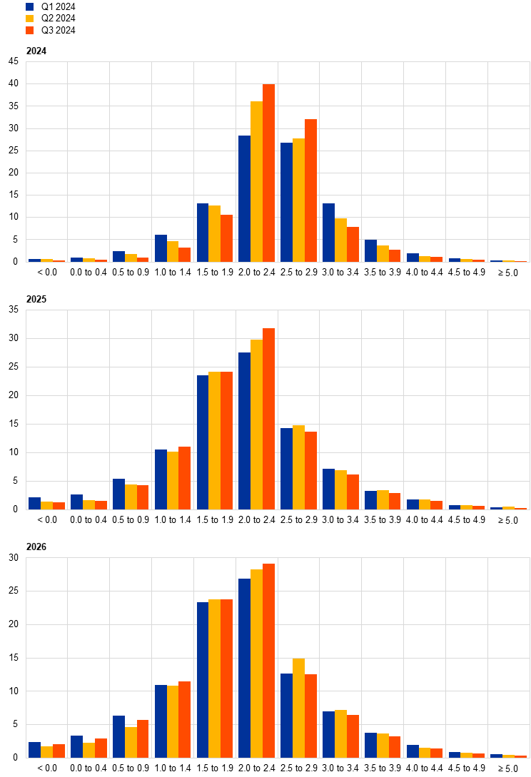 Aggregate probability distributions for expected inflation in 2024, 2025 and 2026