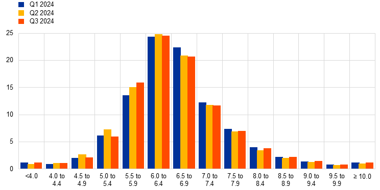 8. In the previous survey round (Q2 2024), regarding the changes to the operational framework it was reported that, while some respondents explicitly mentioned that those changes were reflected in their forecasts, this was not clear for all respondents. In fact, examining the individual forecasts, it was estimated that around one-third of respondents had incorporated the narrowed spread between the MRO rate and the deposit facility rate (DFR) into their forecasts and that this largely explained the 15 basis point downward revision of the profile relative to the Q1 2024 round (compared with the 35 basis point narrowing implied by the change in the MRO-DFR differential).